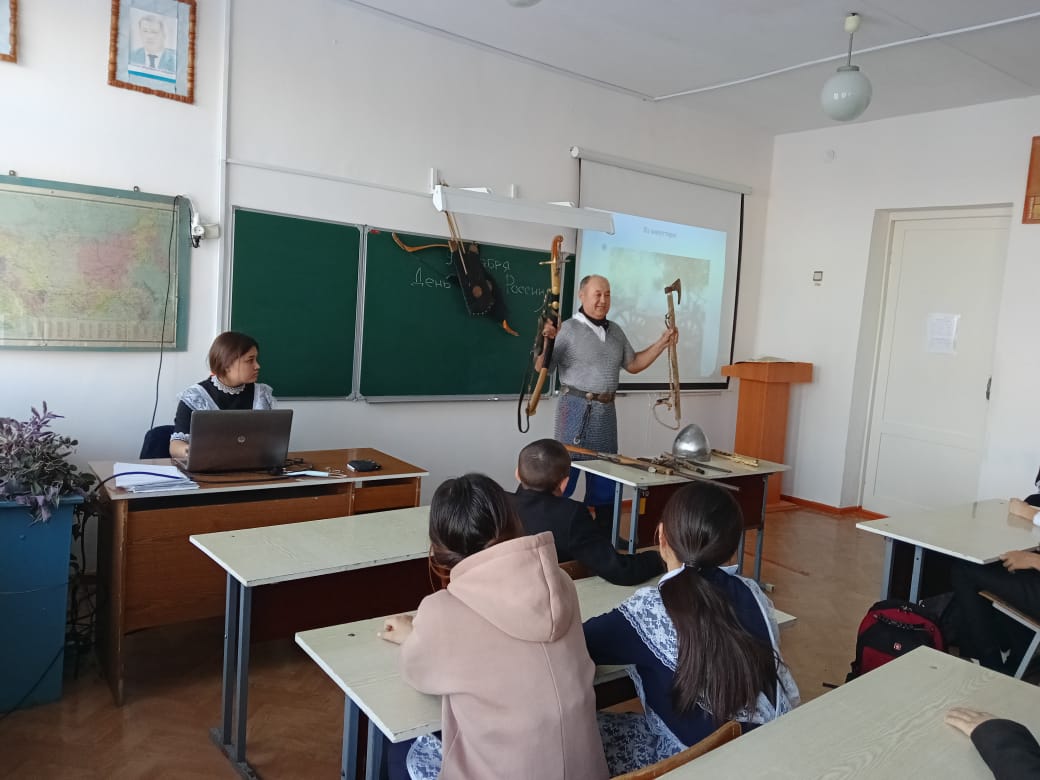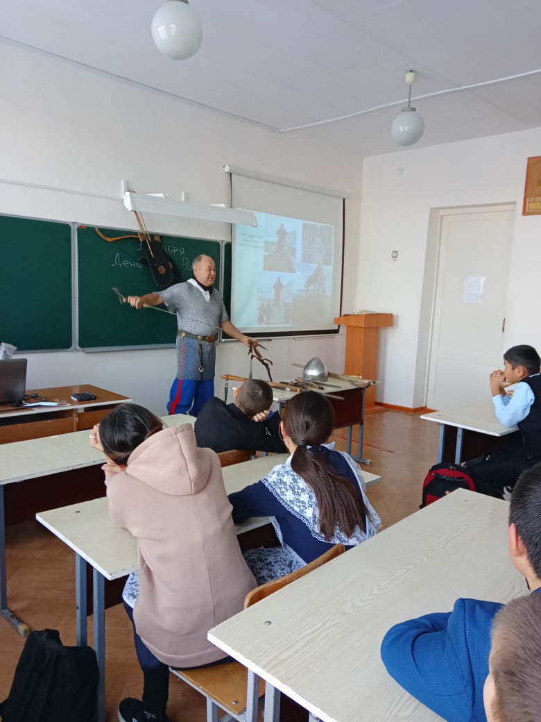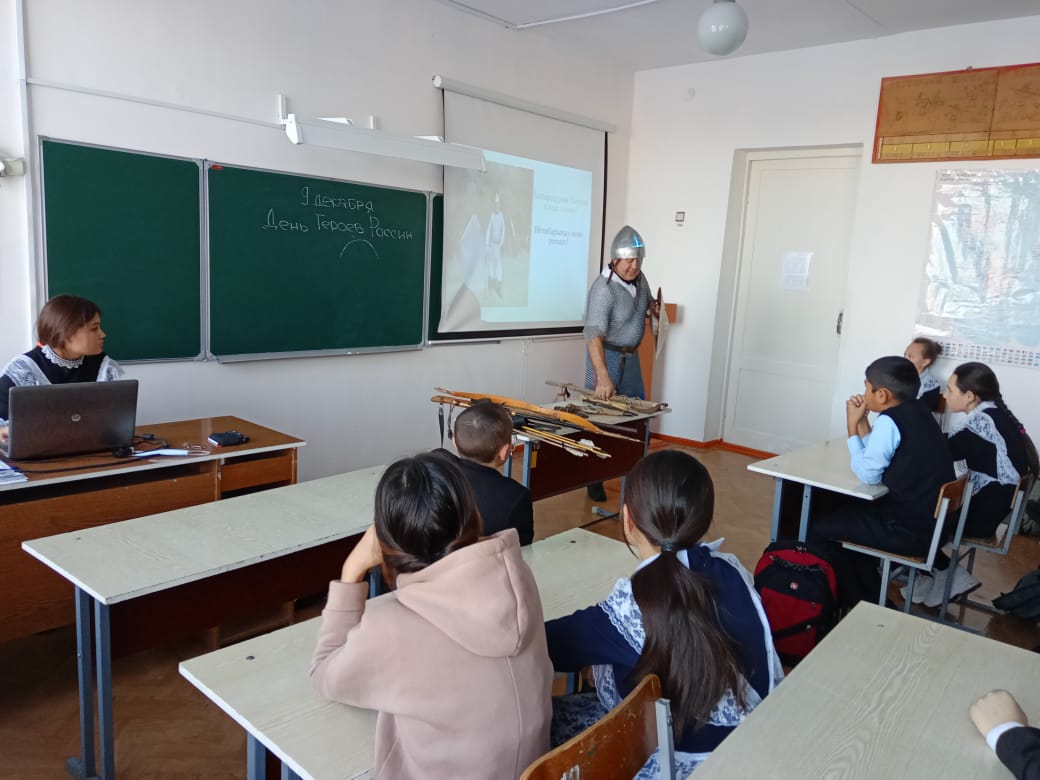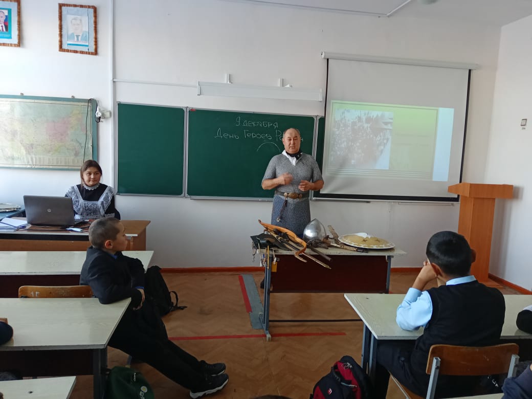 Ватан Геройҙары көнө уңайынан Өмөтбай мәктәбе уҡыусыларына тарихсы-реконструктор, Темәс музейы директоры, йәмғиәтте өйрәнеү уҡытыусыһы Мәжитов Айҙар Рәис улы мауыҡтырғыс дәрес үткәрҙе.